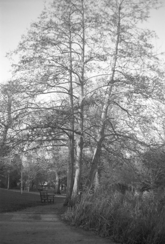 Loaded with a roll of 100 ISO rated 120 black and white film, I took the Kodak with me when we went for a walk on Christmas day around our local park. Fortunately it was a bright sunny day, with one shutter speed and fixed aperture photography on a very dull overcast day is a non starter, back when the Kodak was produced there was not the range of films available to us now.